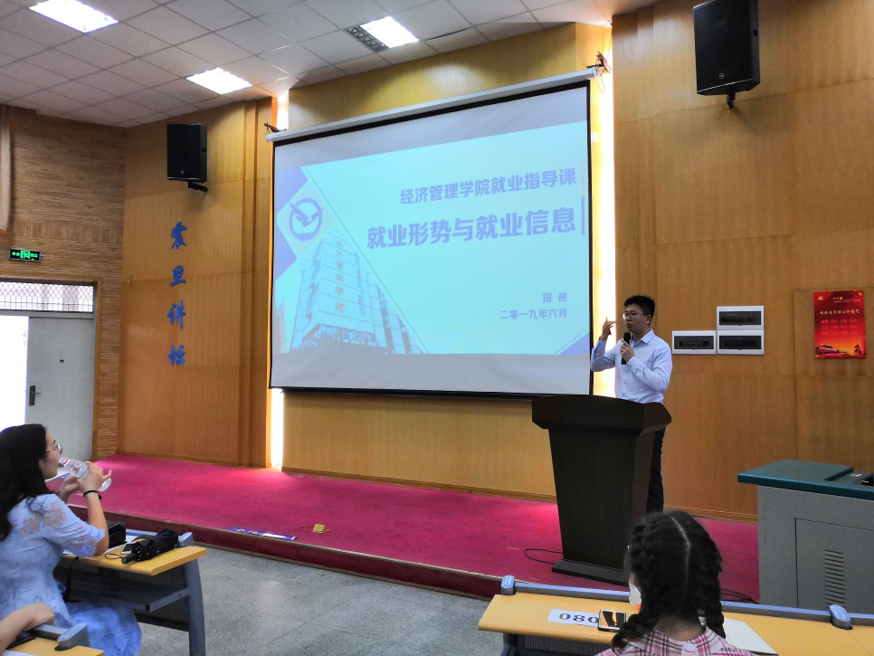 (通讯员:赵玲雪)2019年6月1日上午8:30,工口漫画 2016级全体学生的就业指导课第二讲在教三楼109开讲。学院16级辅导员田昆,17级辅导员徐媛,“跟谁学”高途课堂项目初中部总监、会计学05级校友曹维佳主讲本次课程,为同学们分析就业形势与政策、讲解就业信息及关键节点、分享求职经验。