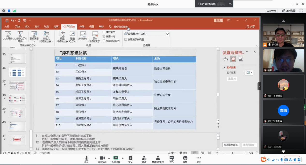 首先,前1号店基础架构师、前京东架构师陆坚学长以“互联网电商架构演进及京东的实践”为主题做报告。他主要围绕“电商系统架构演变以及京东架构实践”两部分展开。介绍了从单服务器到业务拆分、SOA服务化的演进,让同学们对电商架构有了初步了解。陆坚学长还特别为同学们介绍了京东T序列职级体系以及架构目标,并详细讲解了京东交易订单应用实例,让同学们对网站架构有了更加深入的认识。最后陆坚学长提到网站灾备切换问题,谈到京东每年会提前几个月开始为618大促做不同等级的各种预案,强调灾备切换保证系统稳定运行的重要性。