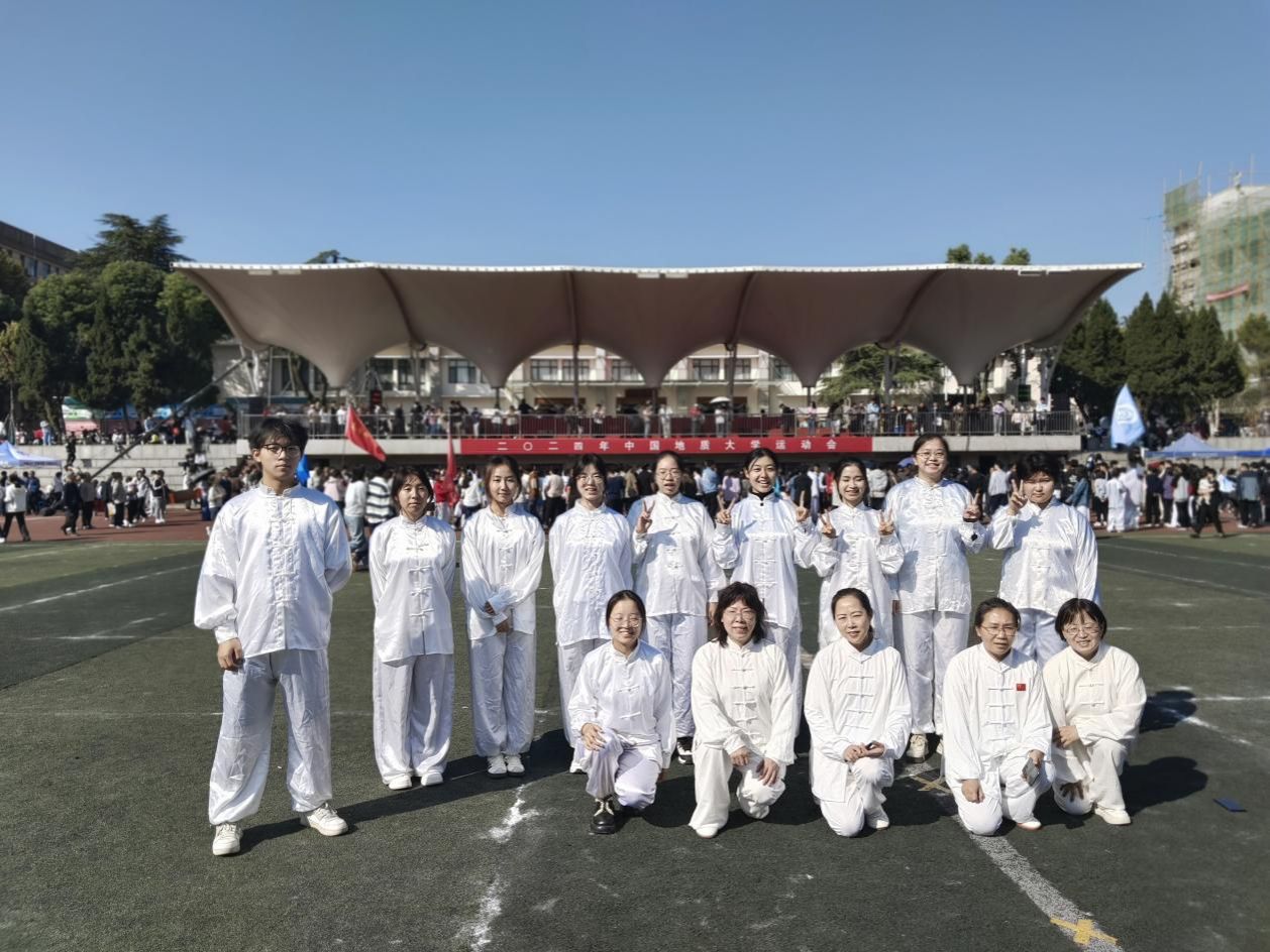 在校第一届健身气功八段锦比赛中荣获一等奖的经管师生们,在开幕式八段锦表演阵列的C位,向师生们展现了中华优秀传统武术文化的魅力。