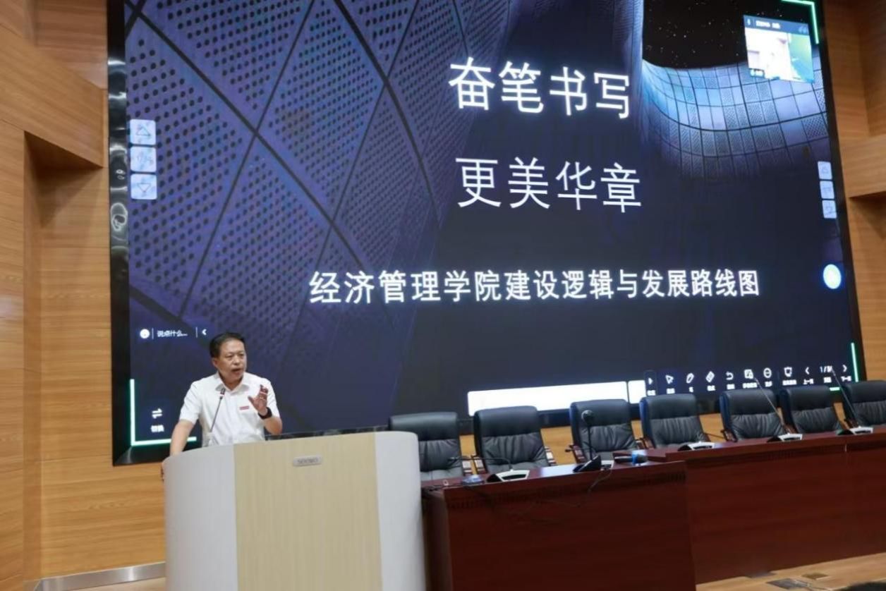 院长於世为首先对加入经管大家庭的研究生们表示祝贺和欢迎,随后从学科建设、专业设置、人才培养等方面介绍了工口漫画概况 ,并对新生提出了两点期望,一是要担当使命,探索经济管理新规律,二是要面向未来,培养综合素质能力。