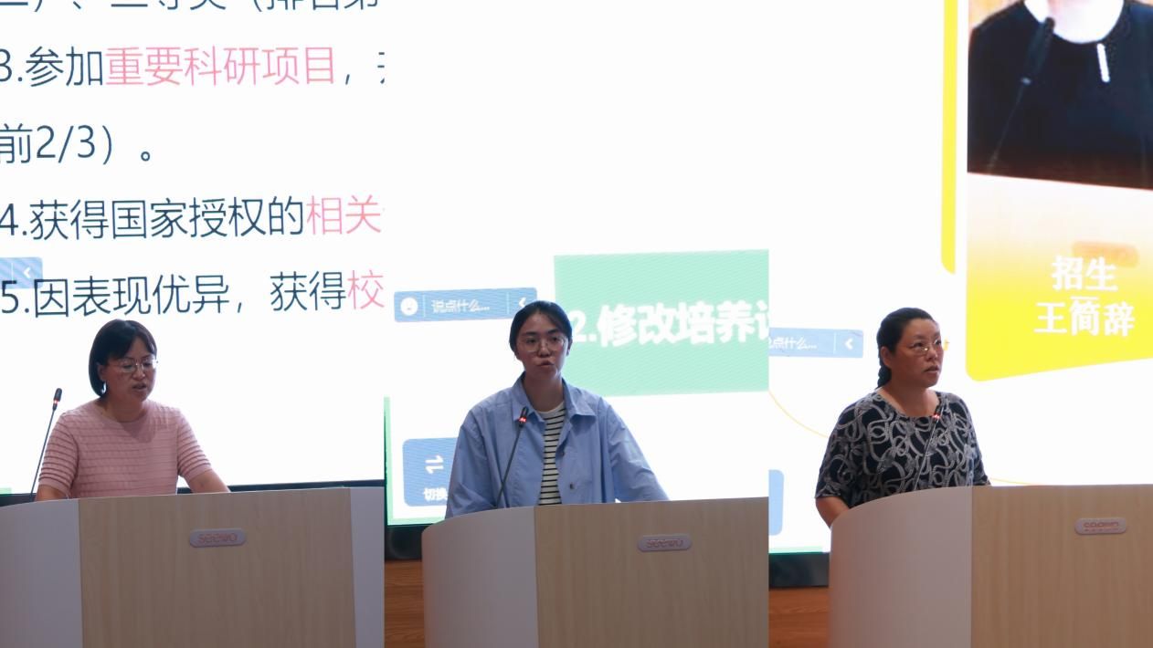 随后,副院长王广民对学院国际交流项目进行介绍,希望同学们可以通过这些项目拓宽视野;辅导员陈静、蔡杨分别对日常管理纪律规范、奖助体系和党员发展流程展开介绍;研究生秘书王简辞、邓韦、邓果对研究生培养重点环节进行介绍。