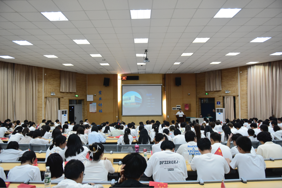 典礼第八项,院党委书记杨昌锐为全体新同学讲授院本课程“了解学院文化,领悟经管精神”。他从学院院训、院风、院徽和学院使命、愿景等五个文方面对学院文化内涵和精神内核进行深入了解,希望全体同学成为卓越、和谐、幸福的独立个体。