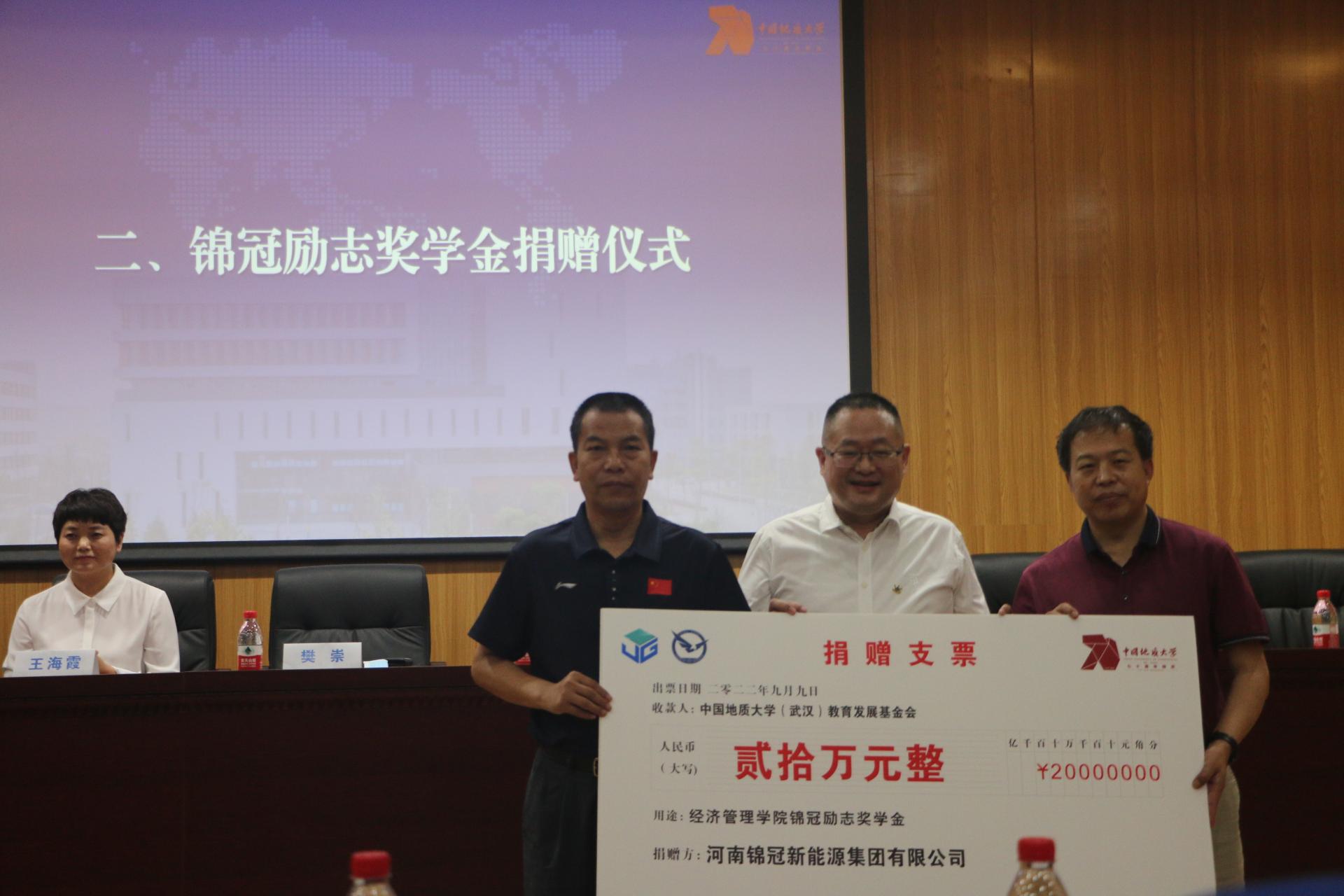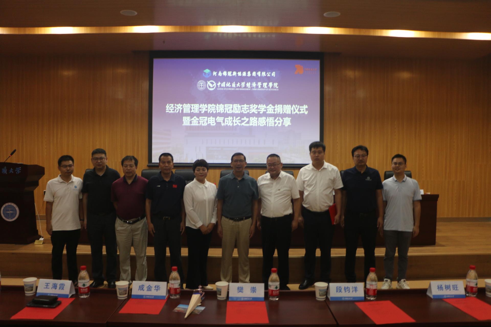 (通讯员 高婧珂)9月9日上午,工口漫画 “锦冠励志奖学金”捐赠仪。会议由学校原校党委副书记、纪委书记成金华教授主持。工口漫画 客座教授、河南锦冠新能源集团有限公司总裁、金冠电气股份有限公司董事长兼总经理樊崇向经管学院捐赠善款并致辞;金冠电气副总裁王海霞、人力资源经理段均洋及经管学院、自动化学院及校友与社会合作处负责同志参加了本次活动。