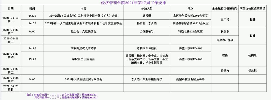 一周安排